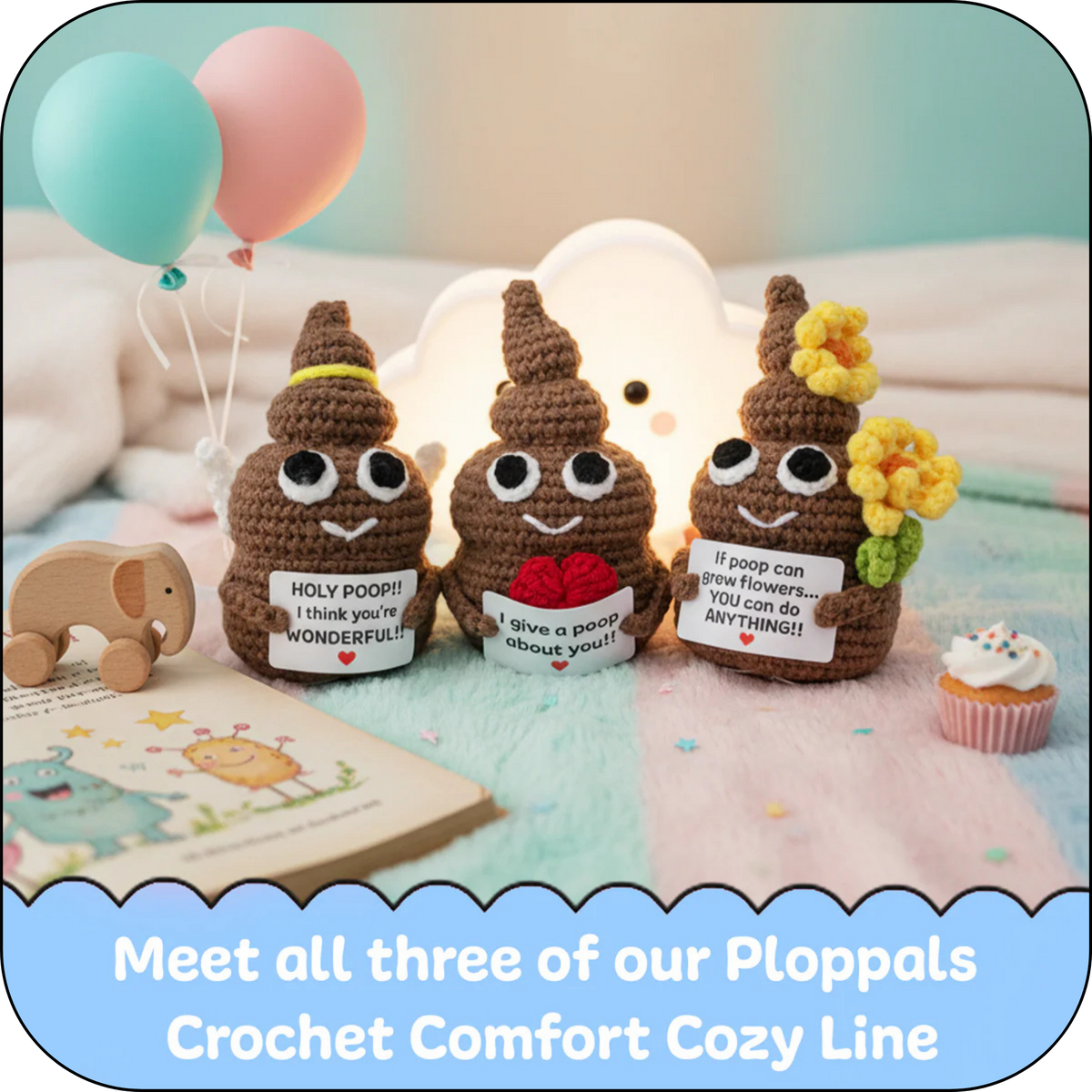 Each Ploppal is hand-crocheted with care, using soft, durable milk cotton yarn and filled with plush pp cotton. Made from all-new materials, these quirky companions are as safe as they are charming—certified by the CPSC for your peace of mind.